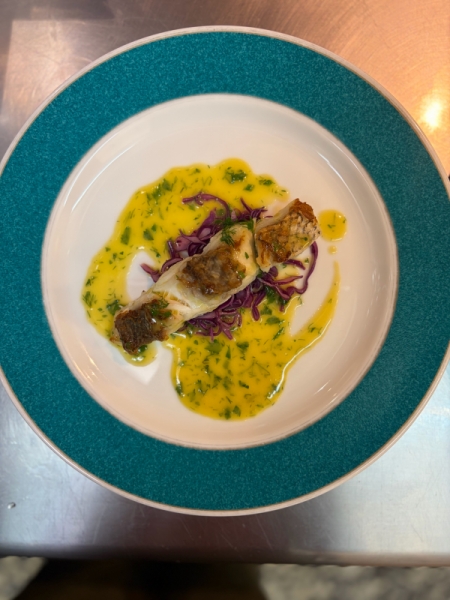 「鹿児島県産黒毛和牛スネ肉の赤ワイン煮のコース」の魚料理